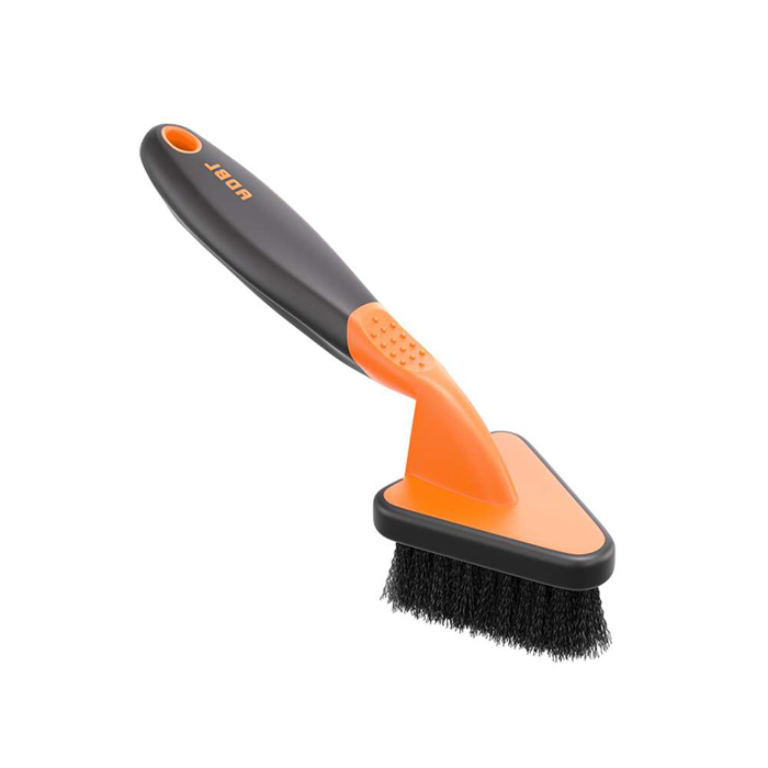 Escova para limpeza de pneus de vários tipos de piso. A forma triangular e as cerdas adequadamente duradouras permitem alcançar e limpar de forma eficaz até os locais de difícil acesso.